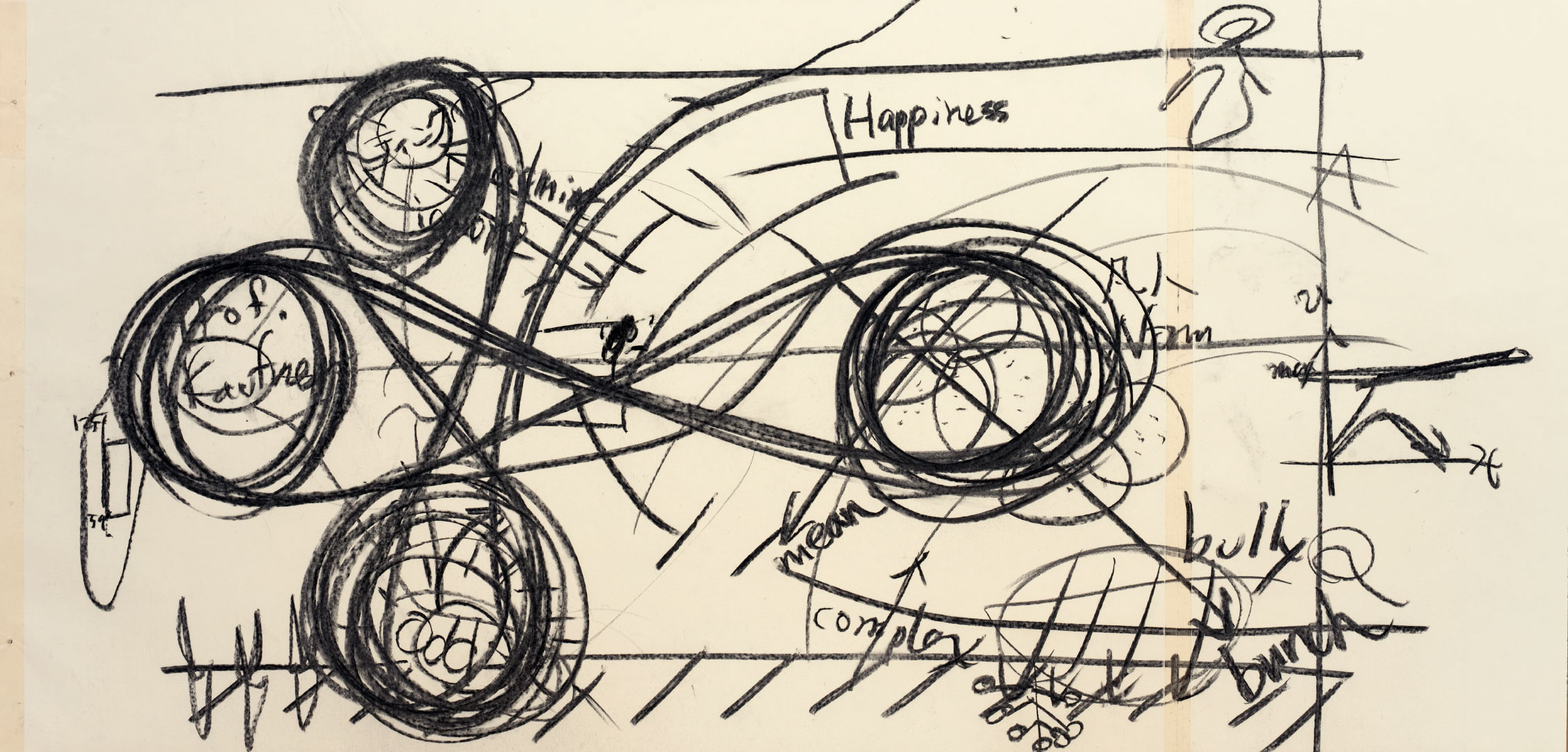 I’m often wondering what happens when I become the graph myself. Strange Attractor is something that emerges, when you plug into a computer these differential equations. It’s like there are two planes that don’t meet and I as a point would be going around this point. At some point, it starts to lose the gravity and goes to another plane, go around, come back at some point, go around. What’s unpredictable about this point, is the moment it hops between the two circles. Nobody knows how many times it goes around. Maybe it’s once, five times, and two thousand sixty-five times and then, three times, one time, fifty times, two million times… Nobody knows when exactly it’s going to move to another plane.